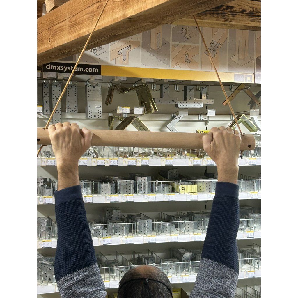 Perfektně vybroušená, dokonalá na dotek, krásná na pohled. Buková posilovací hrazda. univerzální rozměr šířka /výška = 70 mm/45 mm. Možno zavěsit kamkoliv, kdykoliv, jakkoliv. Třeba na strom, na hřebík, trám a nebo v práci na věšák. Na koncich jsou 4 otvory na protažení pevnostní šnůry, která je v délce 150 cm dodávána dohromady s hrazdou.
